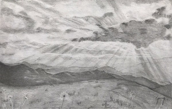 The start of the summer season will be drawing a landscape with graphite pencils. We will cover a variety of landscape elements including grasses, water, mountains and clouds.