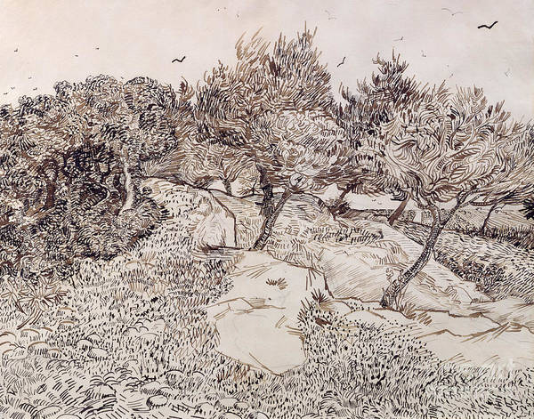 Subject: Pen & Ink landscape drawing in the style of Vincent van Gogh