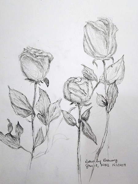 January 18: Dried Roses with Graphite Pencil