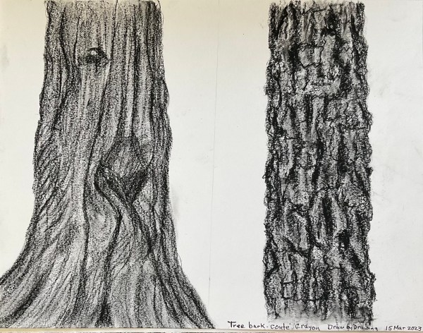 March 15: Tree Bark with Black Conté Crayon