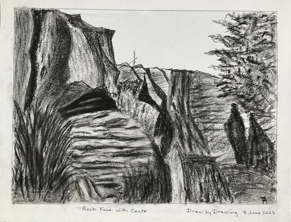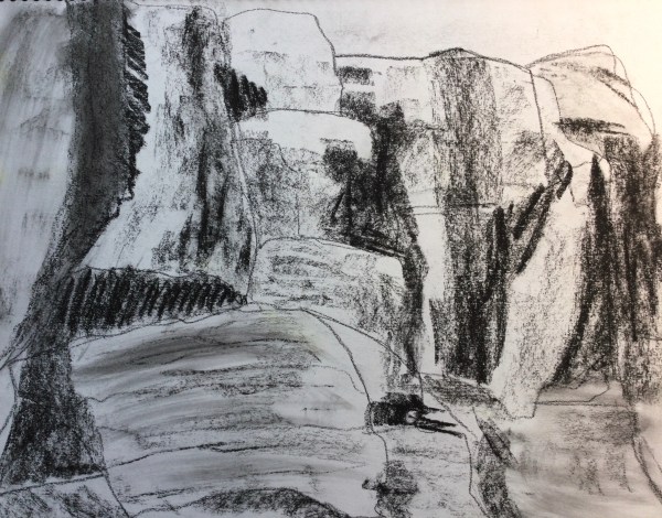 June 7: Rocky Cliffs with Conte Crayon