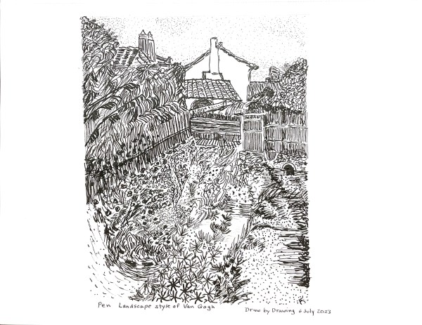 July 5: Van Gogh Landscape with Pen & Ink