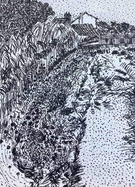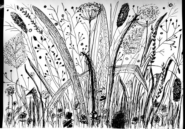 May 10: Grasses with Pen & Ink