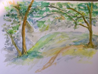 July 19: Cezanne Landscape with Watercolour and Pencil